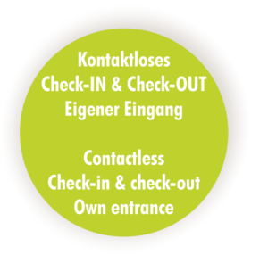 Kontaktloses Check-in und Check-out sind bei uns genauso Standard wie private Haupteingänge für jede Ferienwohnung. Eine eigene und quasi uneinsichtige Terrasse runden die private Atmosphäre ab. Im Erdgeschoss hat man von der Terrasse aus direkten Zugang zu einer eigenen Rasenfläche.
